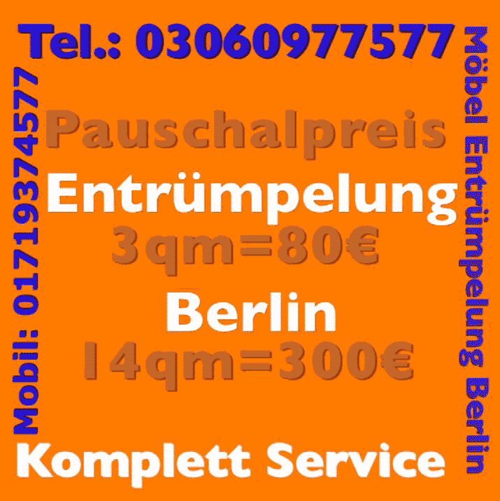 Ebenso wird eine BSR Messi Sperrmüllentsorgung BSR in Messi Sperrmüllentsorgung BSR unmittelbar einmal vonnöten. Mit uns als Partner lässt sie dies gleichermaßen ohne langfristige Planung fix angenehm erfüllen. Mit unseren Messi Sperrmüllentsorgung BSR Offerten Entrümpelungsdienst Sperrmüllabholung Berlin, Möbel Messi Sperrmüllentsorgung BSR und auf Film Messi Sperrmüllentsorgung BSR und Fotos von Messi Sperrmüllentsorgung BSR Sperrmüll Berlin, erhalten Sie Ihre Emtrümpelung fachmännisch zum vereinbarten Preis. Messi Wohnung Messi Sperrmüllentsorgung BSR in Messi Sperrmüllentsorgung BSR oder Möbel Messi Sperrmüllentsorgung BSR in Messi Sperrmüllentsorgung BSR werden jeweils im Kontext unseres Abtransport-Sofortdienstes mit einem neuen Sprinter Fahrzeug durchgeführt und hierdurch zu einem bequemen Projekte zum exklusiven Hammerpreis. Bei uns stimmen Angebot Messi Wohnung entrümpeln heute, Preis, Leistung, Service. Einnehmen Sie sich und telefonieren Sie uns an. Unser professionelle Entrümpelung Berlin Messi Wohnung entrümpeln Service ist zu jedem beliebigen Zeitpunkt erreichbar und steht zu Ihrem Wunschtermin für sämtliche Arbeiten rundum Messi Sperrmüllentsorgung BSR inkl. Abholung in Messi Sperrmüllentsorgung BSR zur Auswahl.